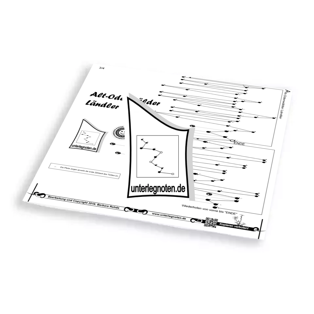 Unsere Noten sind alle zweistimmig bearbeitet (mit Ausnahme mancher Kanons und wenn es explizit vermerkt ist). Spielen Sie mit der rechten Hand die Melodie, während Sie mit der linken Hand eine harmonisch dazu passende Begleitstimme spielen.