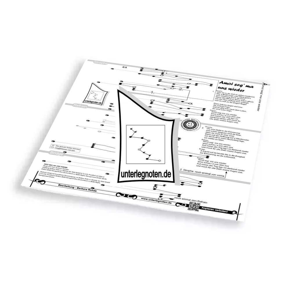 Unsere Noten sind alle zweistimmig bearbeitet (mit Ausnahme mancher Kanons und wenn es explizit vermerkt ist). Spielen Sie mit der rechten Hand die Melodie, während Sie mit der linken Hand eine harmonisch dazu passende Begleitstimme spielen.