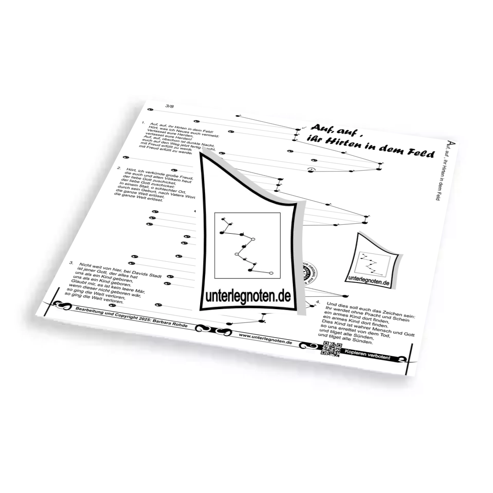 Unsere Noten sind alle zweistimmig bearbeitet (mit Ausnahme mancher Kanons und wenn es explizit vermerkt ist). Spielen Sie mit der rechten Hand die Melodie, während Sie mit der linken Hand eine harmonisch dazu passende Begleitstimme spielen.