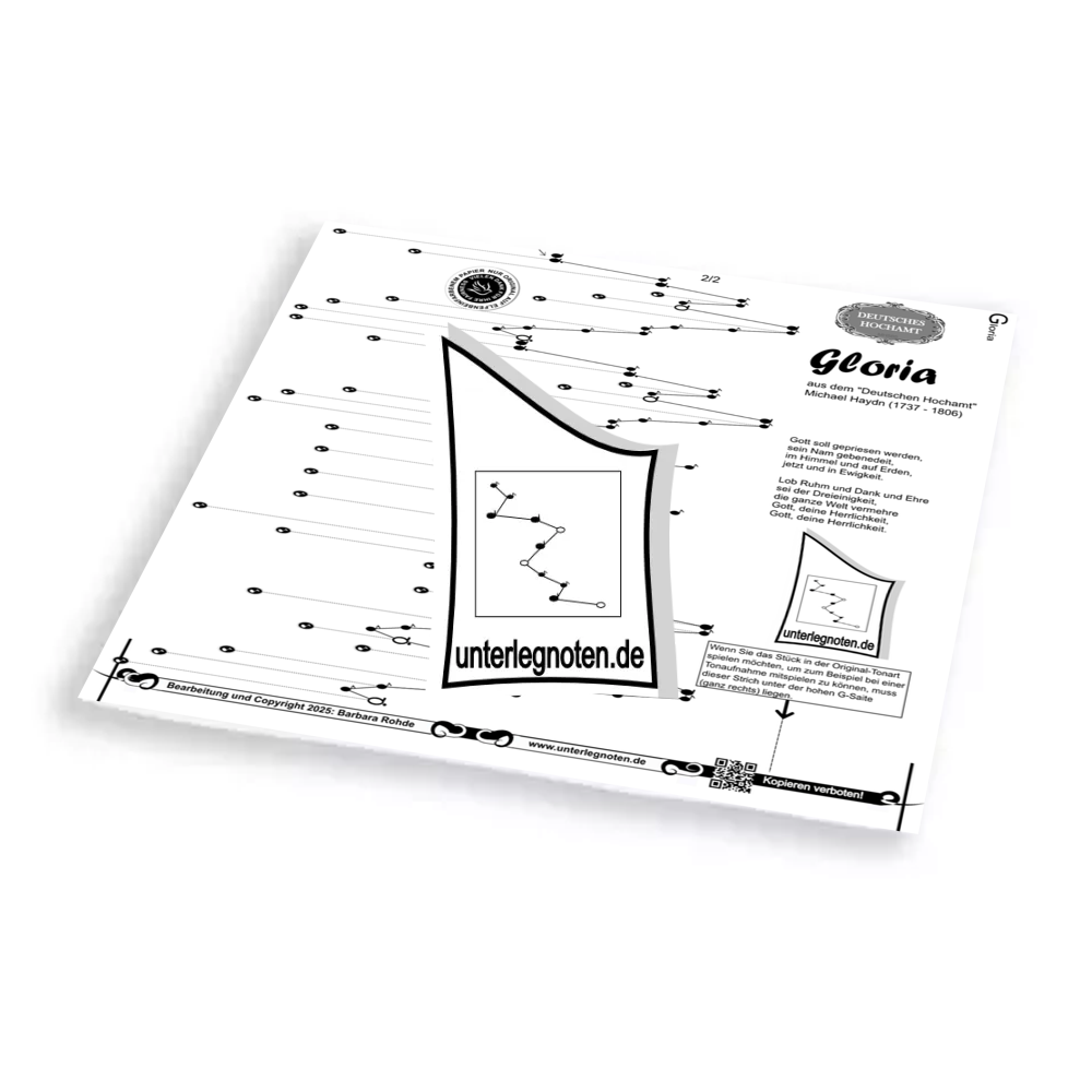 Unsere Noten sind alle zweistimmig bearbeitet (mit Ausnahme mancher Kanons und wenn es explizit vermerkt ist). Spielen Sie mit der rechten Hand die Melodie, während Sie mit der linken Hand eine harmonisch dazu passende Begleitstimme spielen.