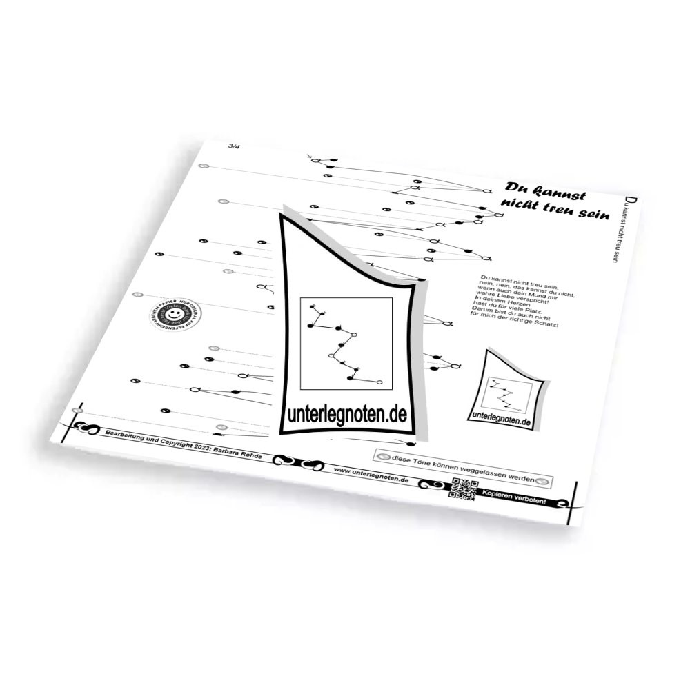 Unsere Noten sind alle zweistimmig bearbeitet (mit Ausnahme mancher Kanons und wenn es explizit vermerkt ist). Spielen Sie mit der rechten Hand die Melodie, während Sie mit der linken Hand eine harmonisch dazu passende Begleitstimme spielen.