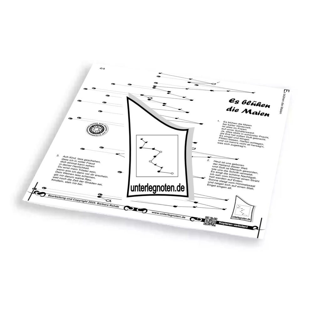 Unsere Noten sind alle zweistimmig bearbeitet (mit Ausnahme mancher Kanons und wenn es explizit vermerkt ist). Spielen Sie mit der rechten Hand die Melodie, während Sie mit der linken Hand eine harmonisch dazu passende Begleitstimme spielen.