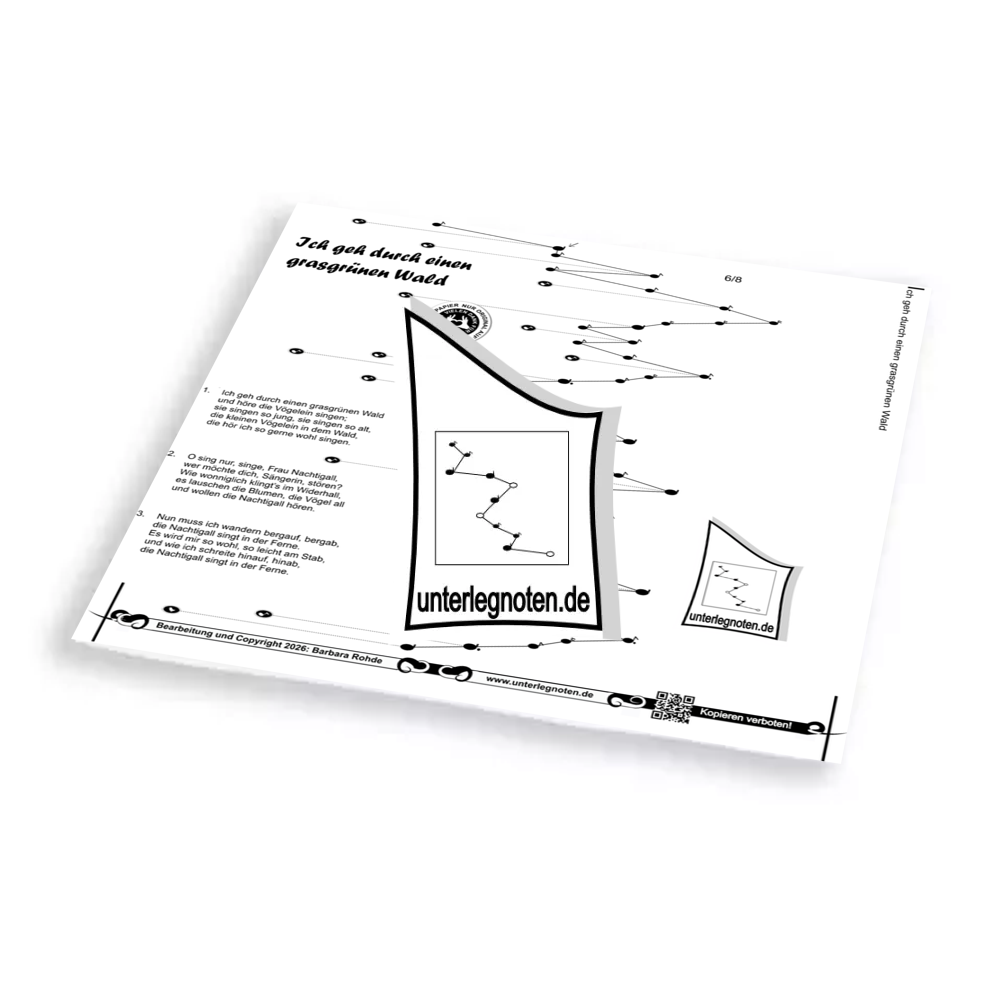 Unsere Noten sind alle zweistimmig bearbeitet (mit Ausnahme mancher Kanons und wenn es explizit vermerkt ist). Spielen Sie mit der rechten Hand die Melodie, während Sie mit der linken Hand eine harmonisch dazu passende Begleitstimme spielen.