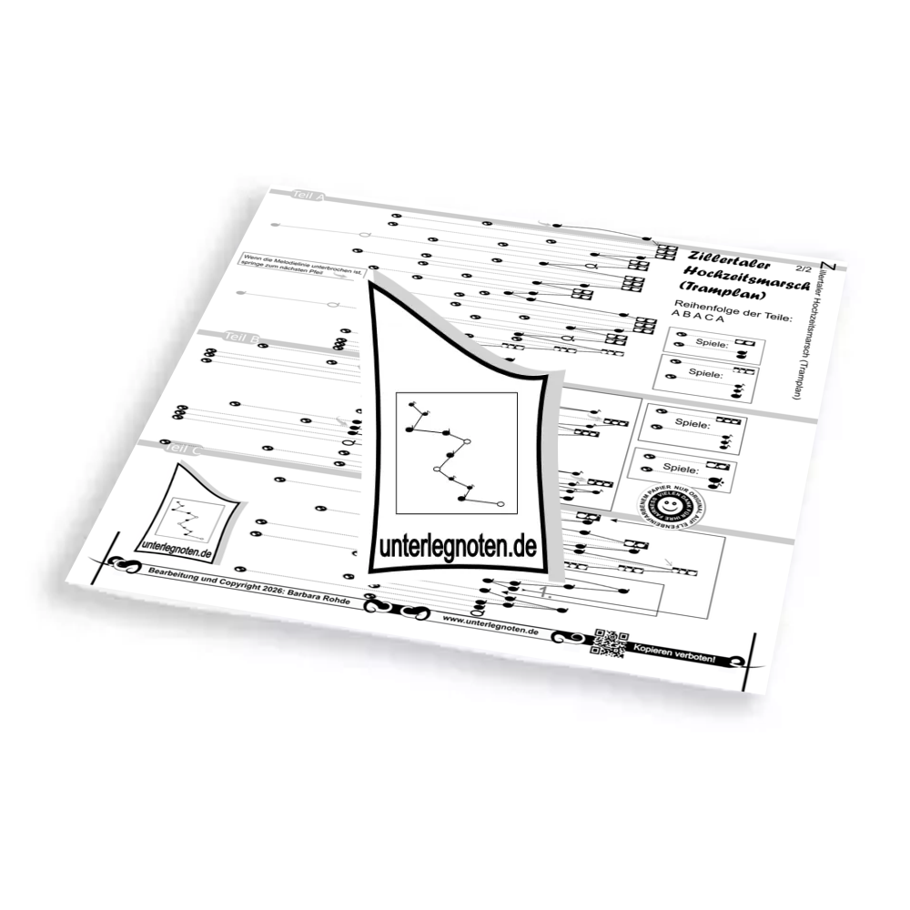 Unsere Noten für Akkordzither mit 25 Melodiesaiten und 6 Akkorden sind auf großformatigem Papier gedruckt und bieten zwei klangvolle Spielmöglichkeiten: 1. Melodie mit Begleittönen, 2. Melodie mit Akkorden. Näheres finden Sie hier.